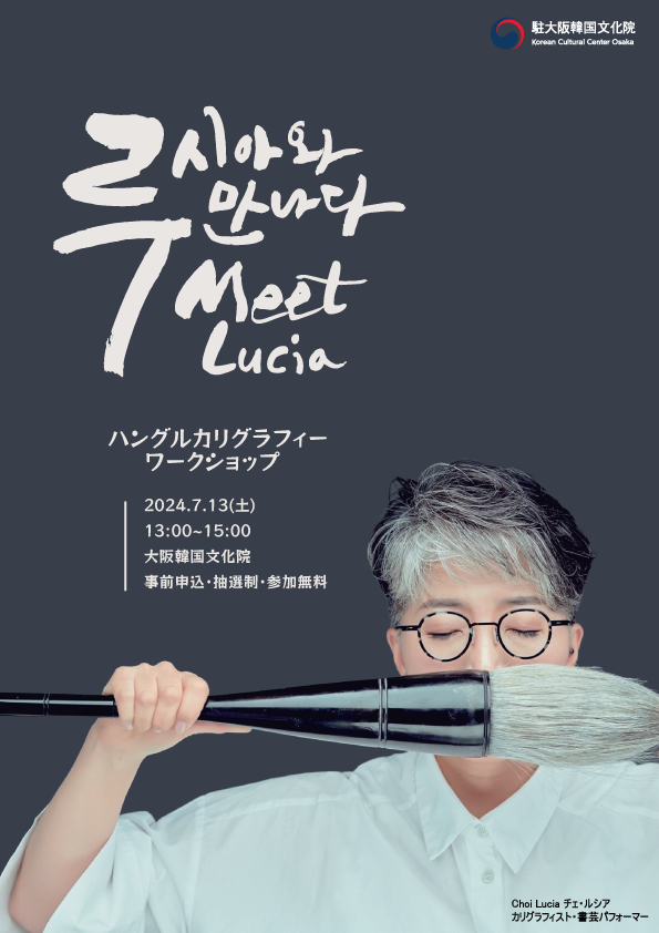 を開催いたします。ハングルカリグラフィー・書芸パフォーマーとして世界中で活動しているチェ・ルシアさんが、ハングルカリグラフィーを分かりやすく教えて下さり、一緒に作品を作る予定です。たくさんの皆様のお越しをお待ちしております。