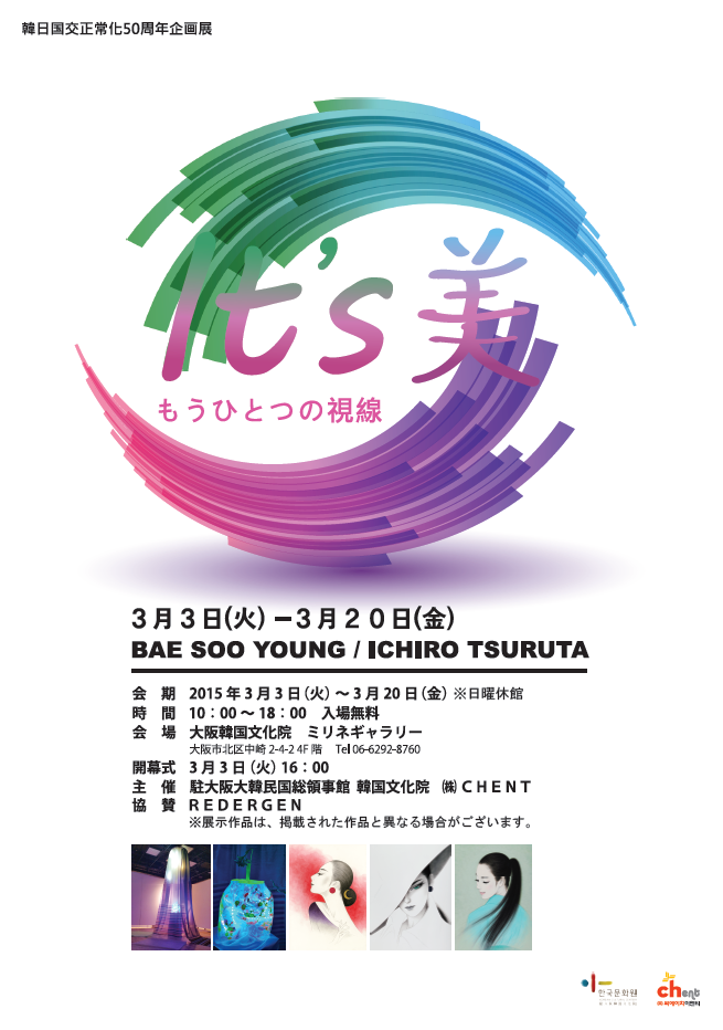 大阪韓国文化院では、韓日国交正常化50周年を迎え、韓国と日本の個性的な2人の作家による韓日交流企画展「It's 美 もうひとつの視線」展を開催いたします。