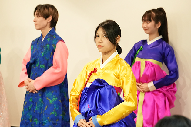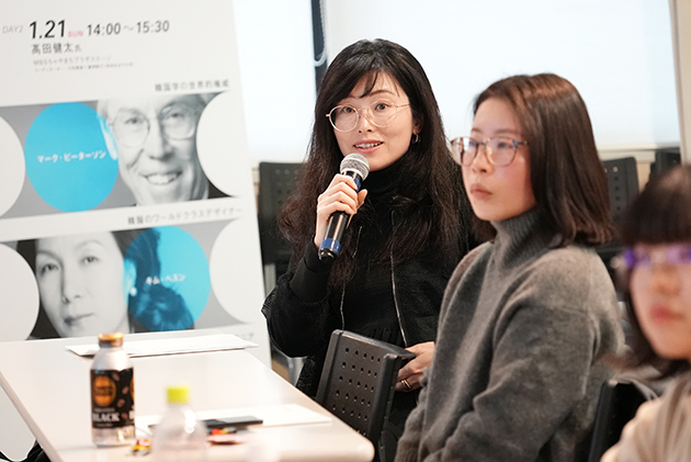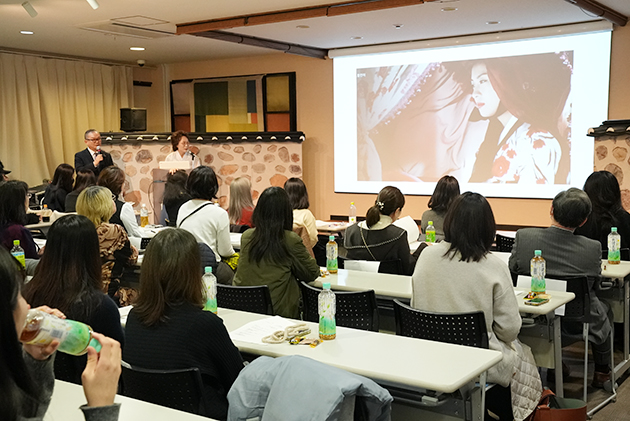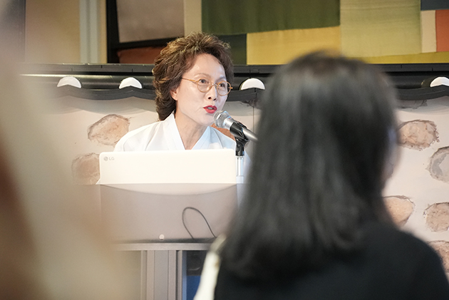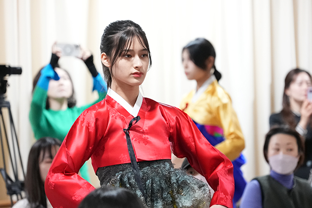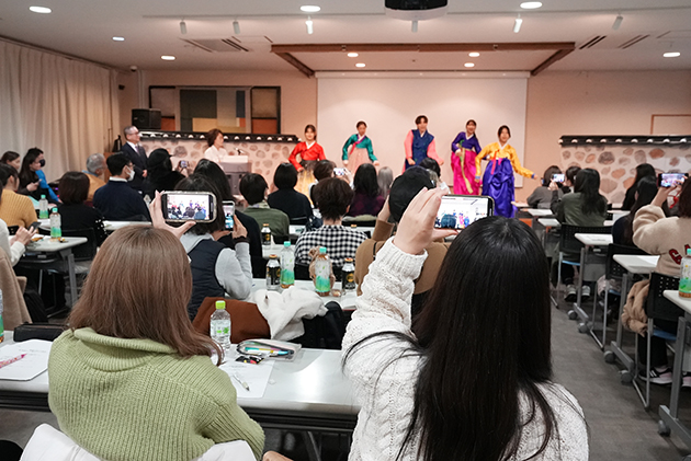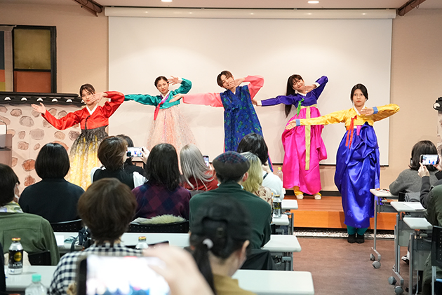 1월 20일(토), 오사카한국문화원은 도시샤여자대학과 공동주최로 특별 심포지엄 "Let's talk about Korean Pop Culture 2" 「K-Culture Odyssey:스타가 말하는 한국 문화의 매력과 다양성」 강연회(1일차)를 오사카한국문화원 누리홀에서 개최하였습니다. 두 번째 강연으로는 한국에서 와주신 한복 명장 김혜순 선생님이 「한복의 현대적 계승 : K-POP과 한류와의 협업」이라는 주제로 말씀을 해주셨습니다. 김혜순 선생님은 이번 강연에서 지금까지 걸어오신 한복의 길을 소개하고 미래로 어떻게 이어나가야 할지에 대해 이야기해 주셨습니다. 또 한복과 K-POP을 콜라보레이션 한 미니 퍼포먼스를 선 보여 한복의 매력을 만끽할 수 있는 시간이 되었습니다. 귀중한 말씀을 해주신 김혜순 선생님, 그리고 강연회에 참석해 주신 여러분 진심으로 감사드립니다.