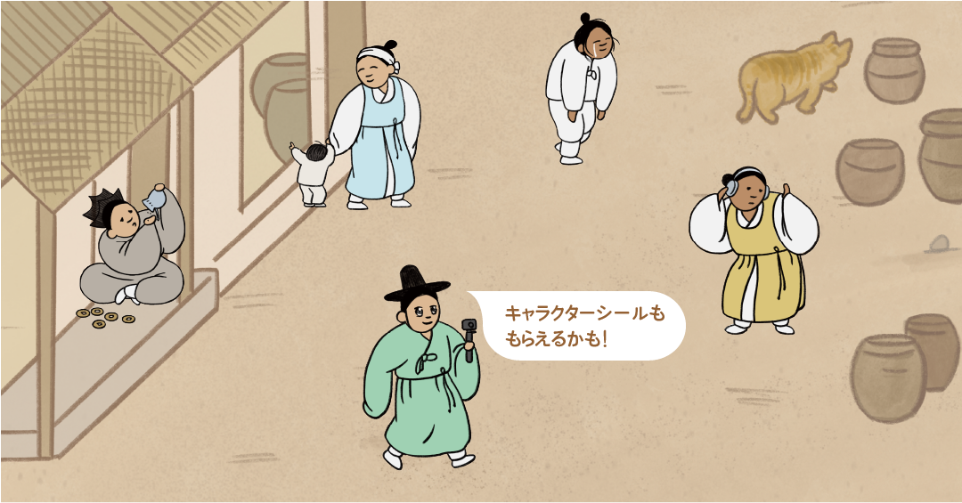 *개인 SNS에 오사카한국문화원을 태그하여 #大阪韓国文化院자신의 풍속도캐릭터를 SNS에 업로드하면 캐릭터 스티커 팩을 드립니다