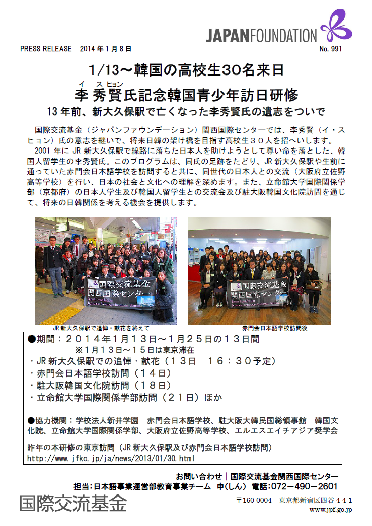 [문화원방문] 이수현씨 기념 한국청소년 방일연수