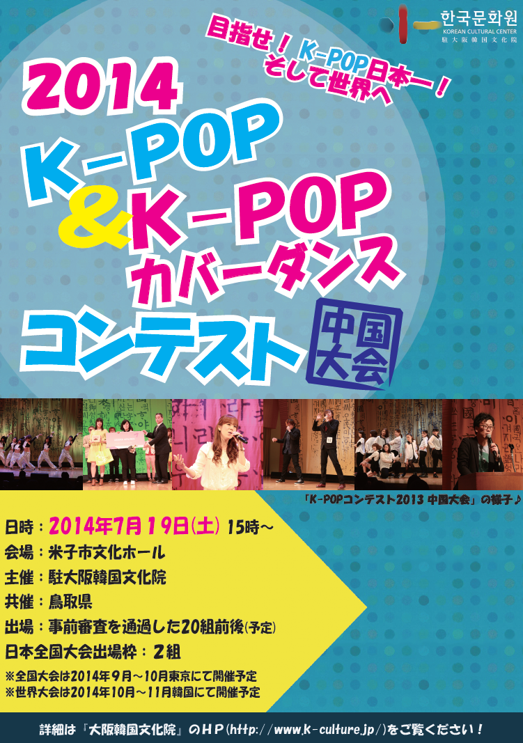 [안내] 개최일정 안내!! K-POP&K-POP 커버댄스 콘테스트 2014 츄고쿠대회