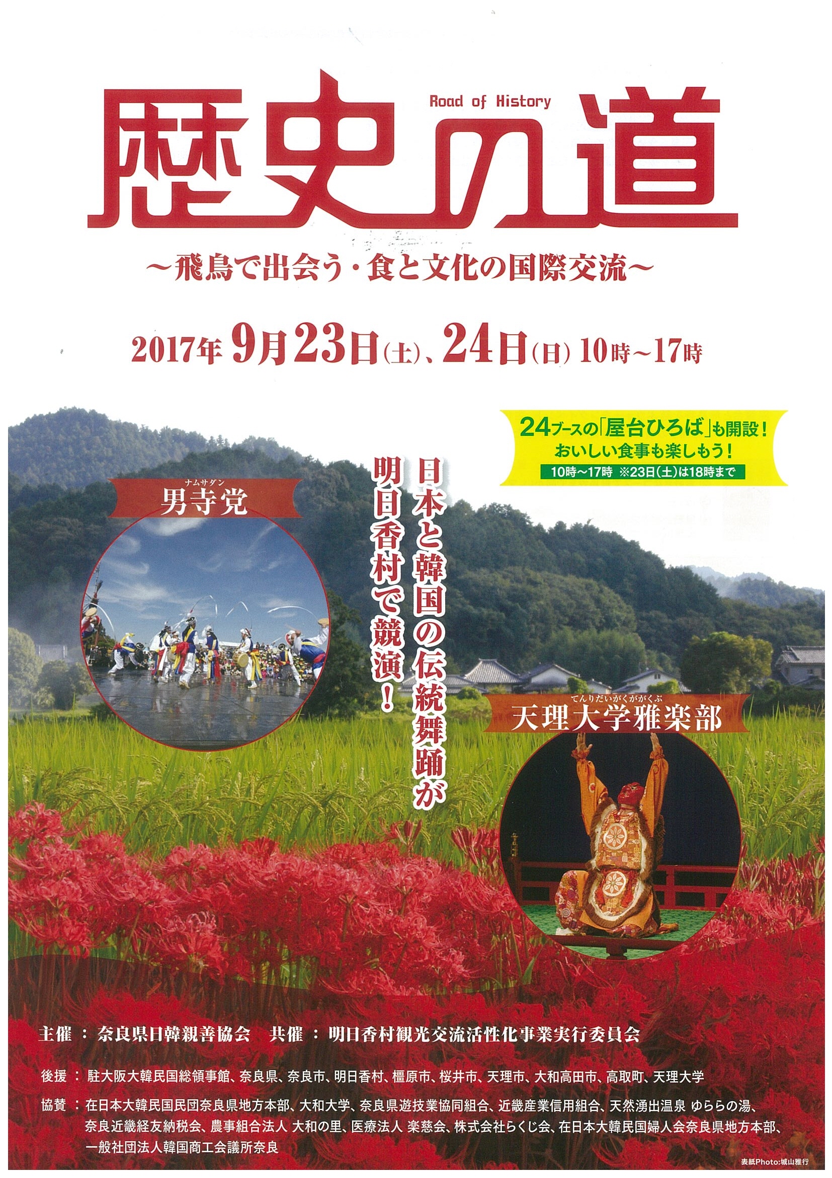 「歴史の道」~飛鳥で出会う・食と文化の国際交流~ | 2017.9.23 ~ 9.24 | |