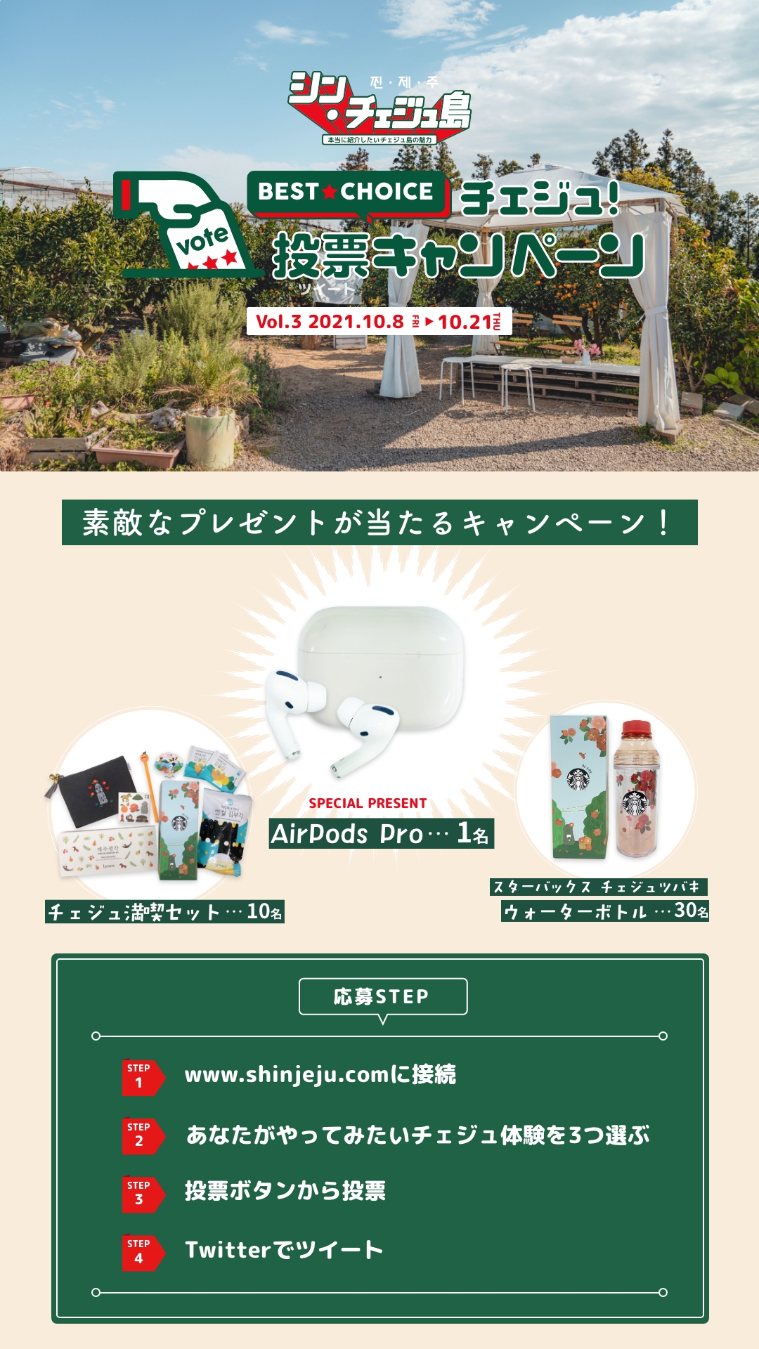 | イベント名 | ★シン・チェジュ島★『BEST CHOICEチェジュ!投票キャンペーン』Vol.3 | |||