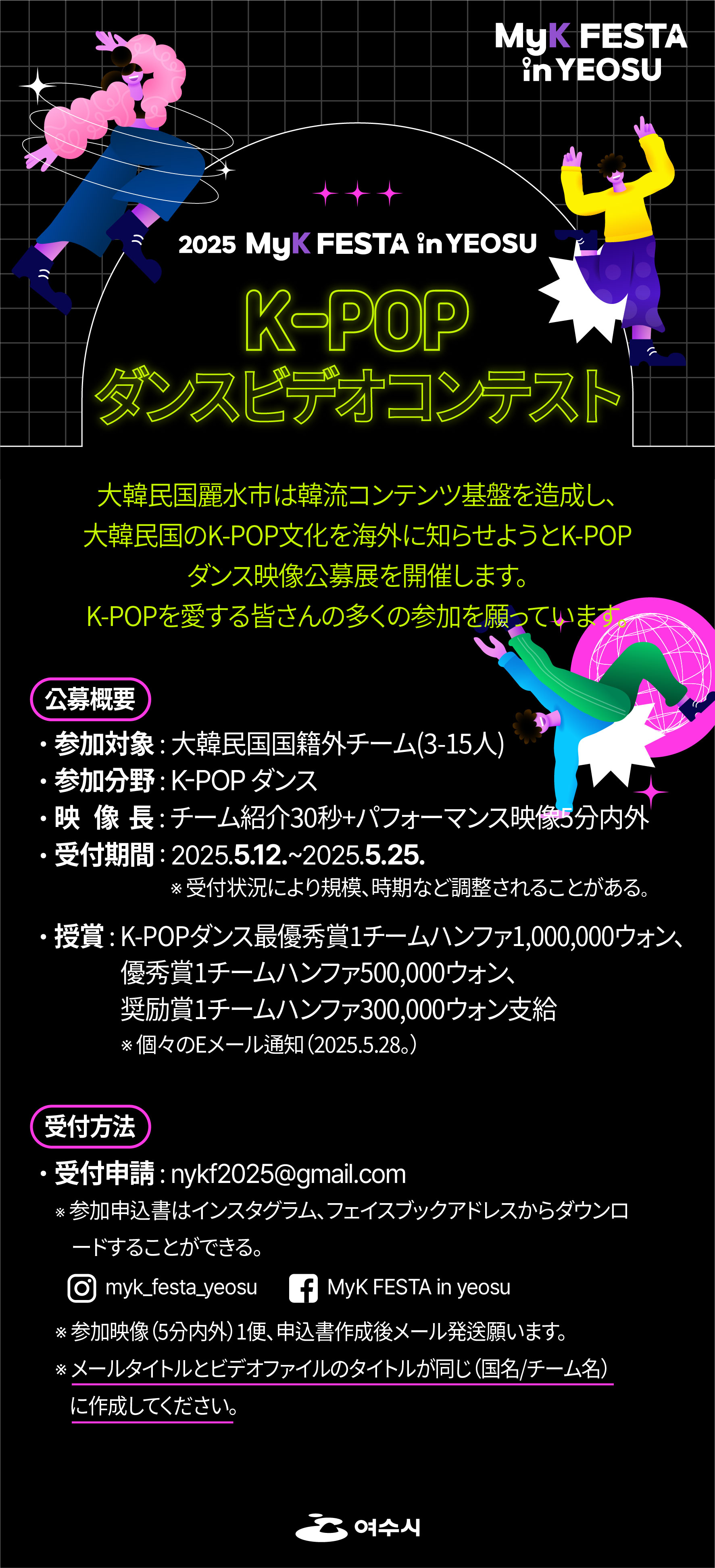 韓国・麗水(ヨス)市では、韓国のK-POP文化を海外に広めるため、K-POPダンス動画コンテストを開催します。