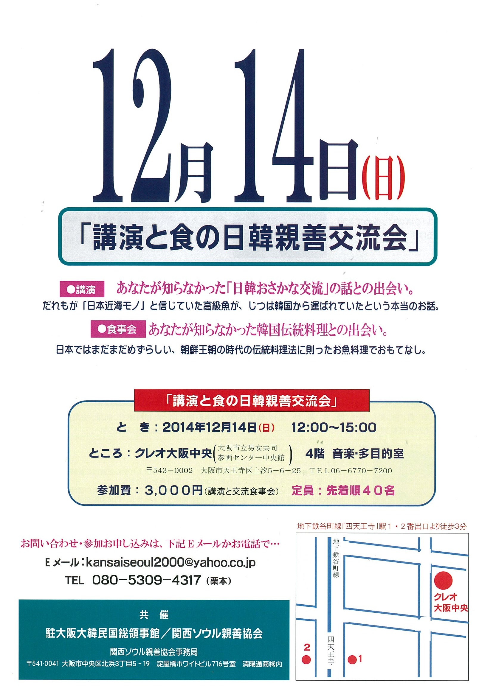 | 主催者 | 駐大阪大韓民国総領事館/関西ソウル親善協会 | 期間 | 2014-12-04 ~ 2014-12-04 | |