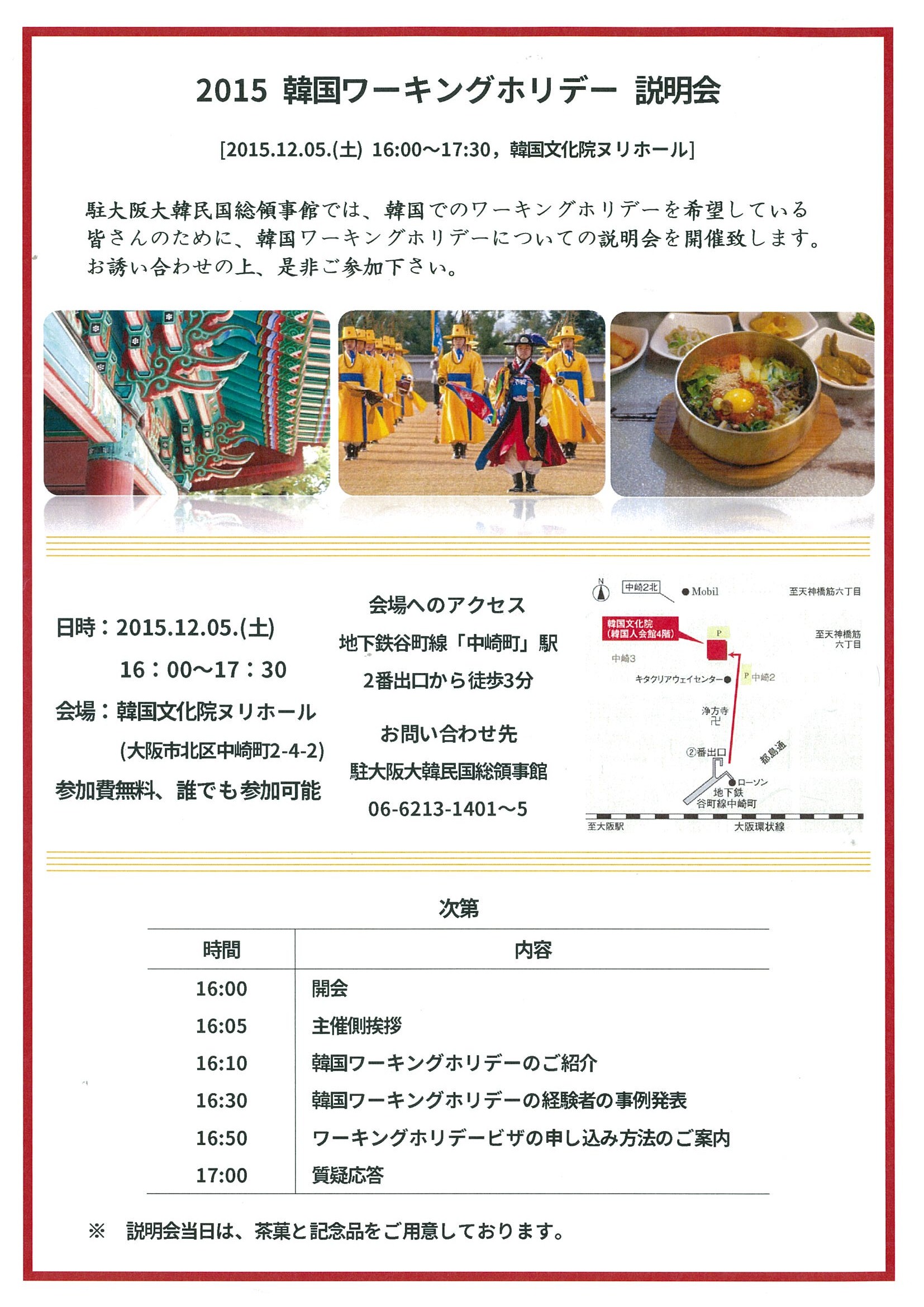 | 主催者 | 駐大阪大韓民国総領事館 | 期間 | 2015-12-05 ~ 2015-12-05 | |