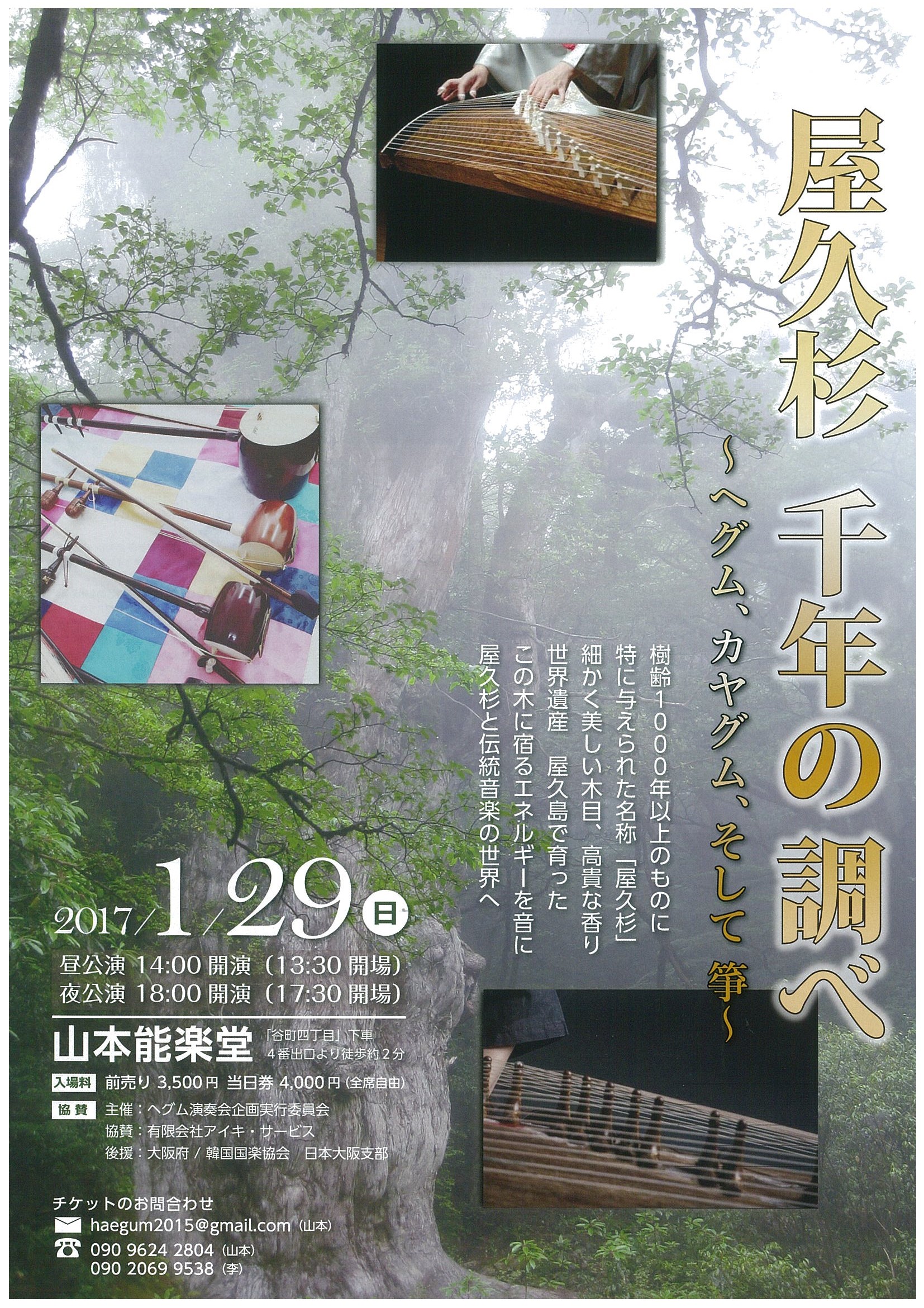 | イベント名 | 屋久杉 千年の調べ ~ヘグム、カヤグム、そして 箏~ | |||