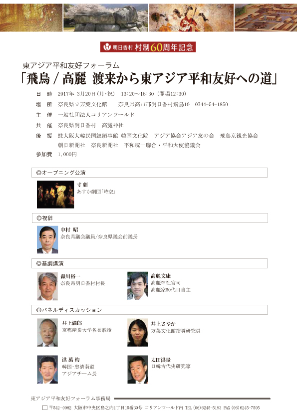 東アジア友好フォーラム「飛鳥/高麗 渡来から東アジア平和友好への道」 |