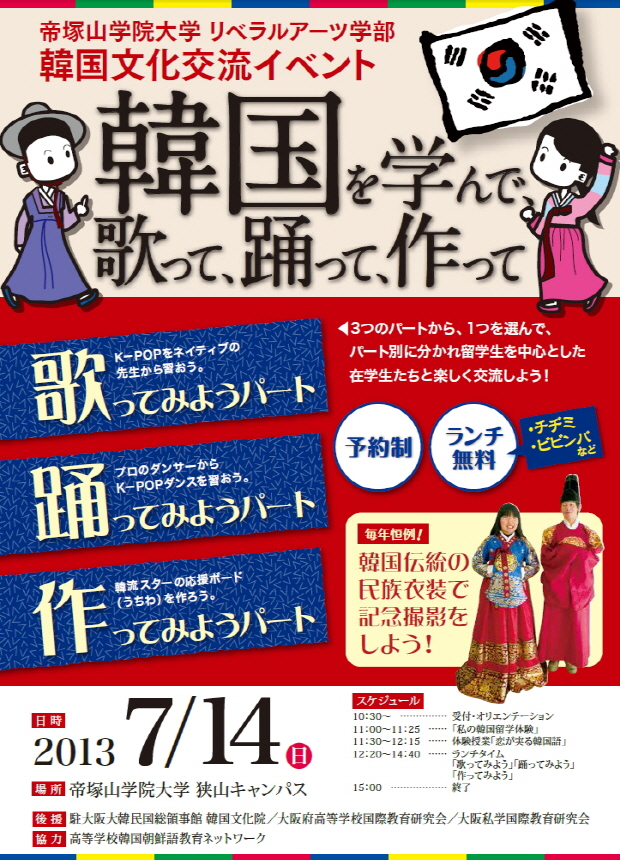 ○ 後援:駐大阪大韓民国総領事館 韓国文化院/大阪府高等学校国際教育研究会/大阪私学国際教育研究会