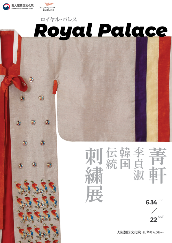大阪韓国文化院ミリネギャラリーにて、韓国伝統の宮廷刺繍や服飾文化を体験できる特別展「Royal Palace-菁軒 李貞淑 韓国伝統刺繍展」を開催いたします。