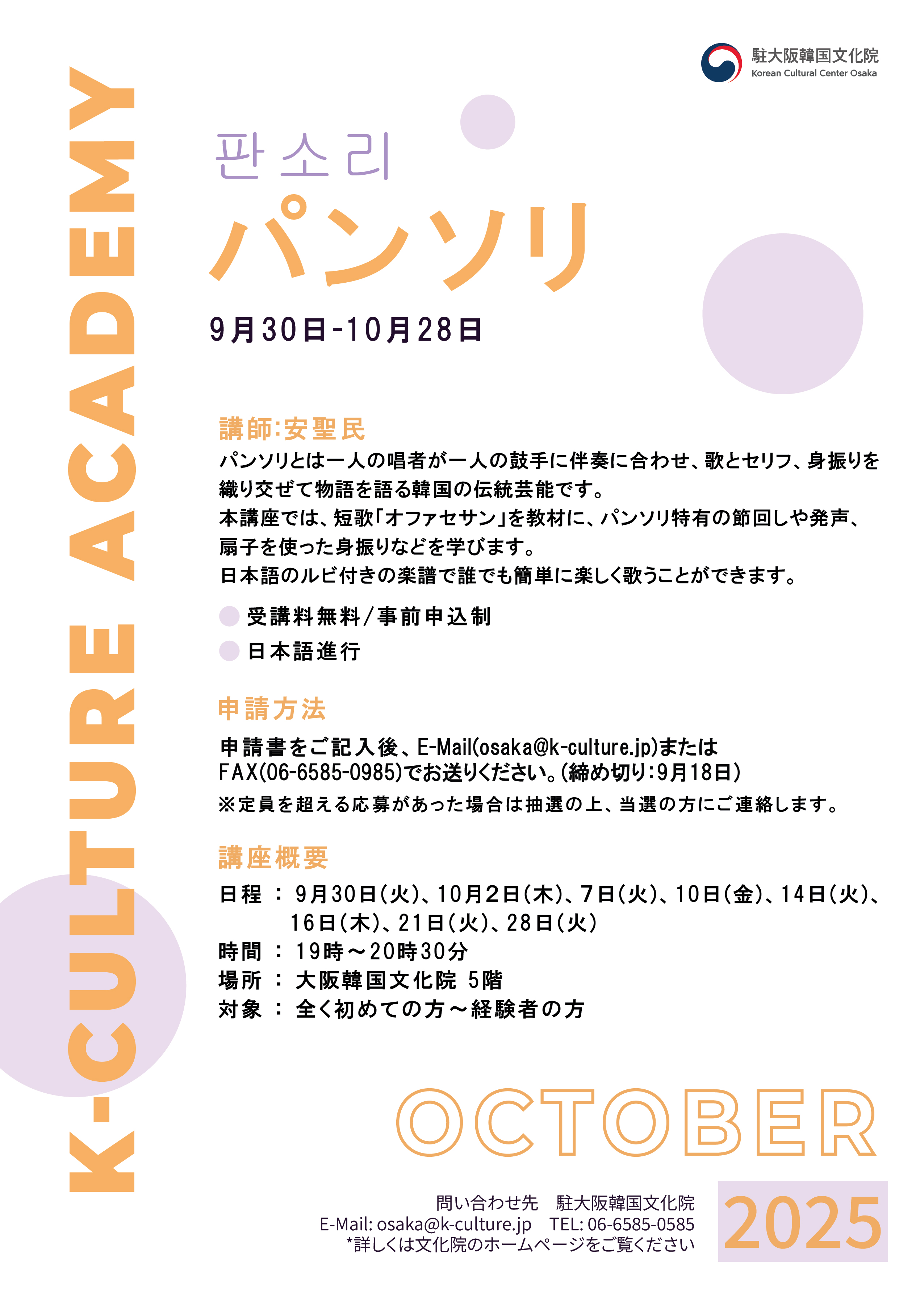 本講座では、短歌「オファセサン」を教材に、パンソリ特有の節回しや発声、扇子を使った身振りなどを学びます。韓国語が読めなくても大丈夫です!日本語のルビ付きの楽譜で誰でも簡単に楽しく歌うことができます。