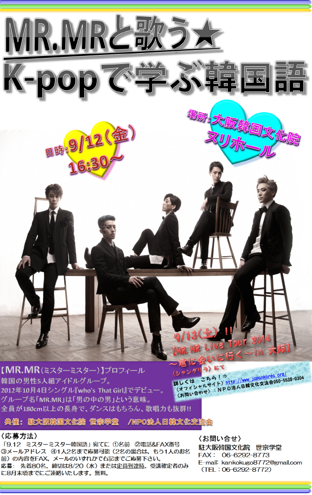 ■ (9/12)【世宗学堂】MR.MRと歌う★K-popで学ぶ韓国語