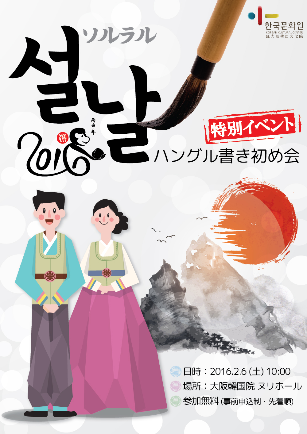 この度、大阪韓国文化院では日本の皆様にソルラルの雰囲気を味わい、韓国の祝日をより身近に感じていただくため、「ソルラル特別イベント・ハングル書き初め会」を開催いたします。