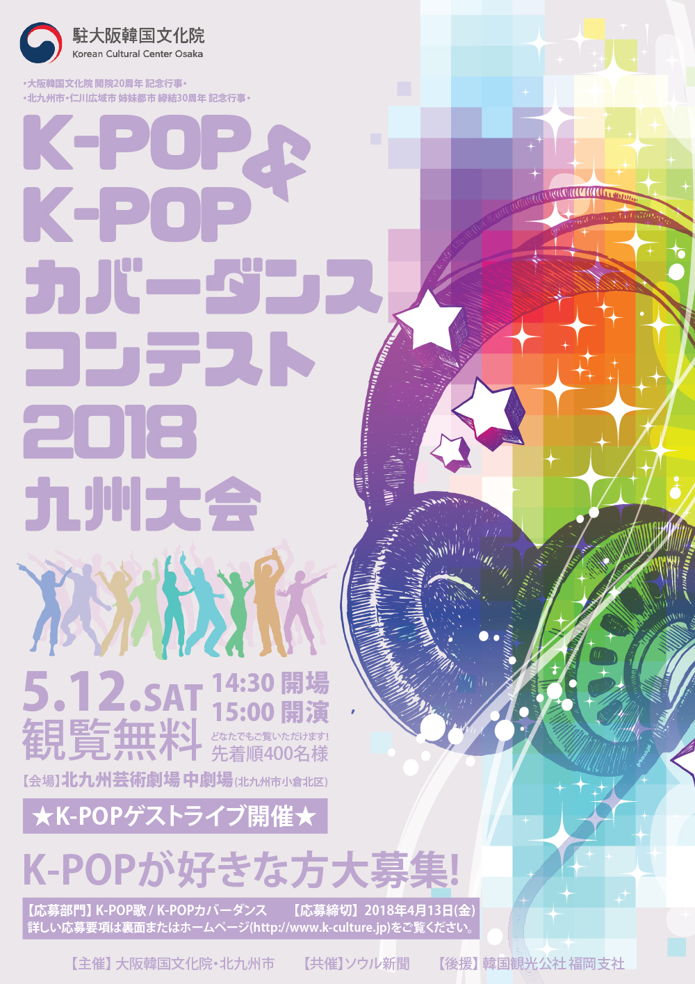 오사카한국문화원에서는 모국어가 한국어가 아니며 일본에 거주하고 계신 분들을 대상으로 한 K-POP 노래 및 커버댄스 대회인 'K-POP&K-POP커버댄스 콘테스트 2018' 규슈대회를 개최합니다.