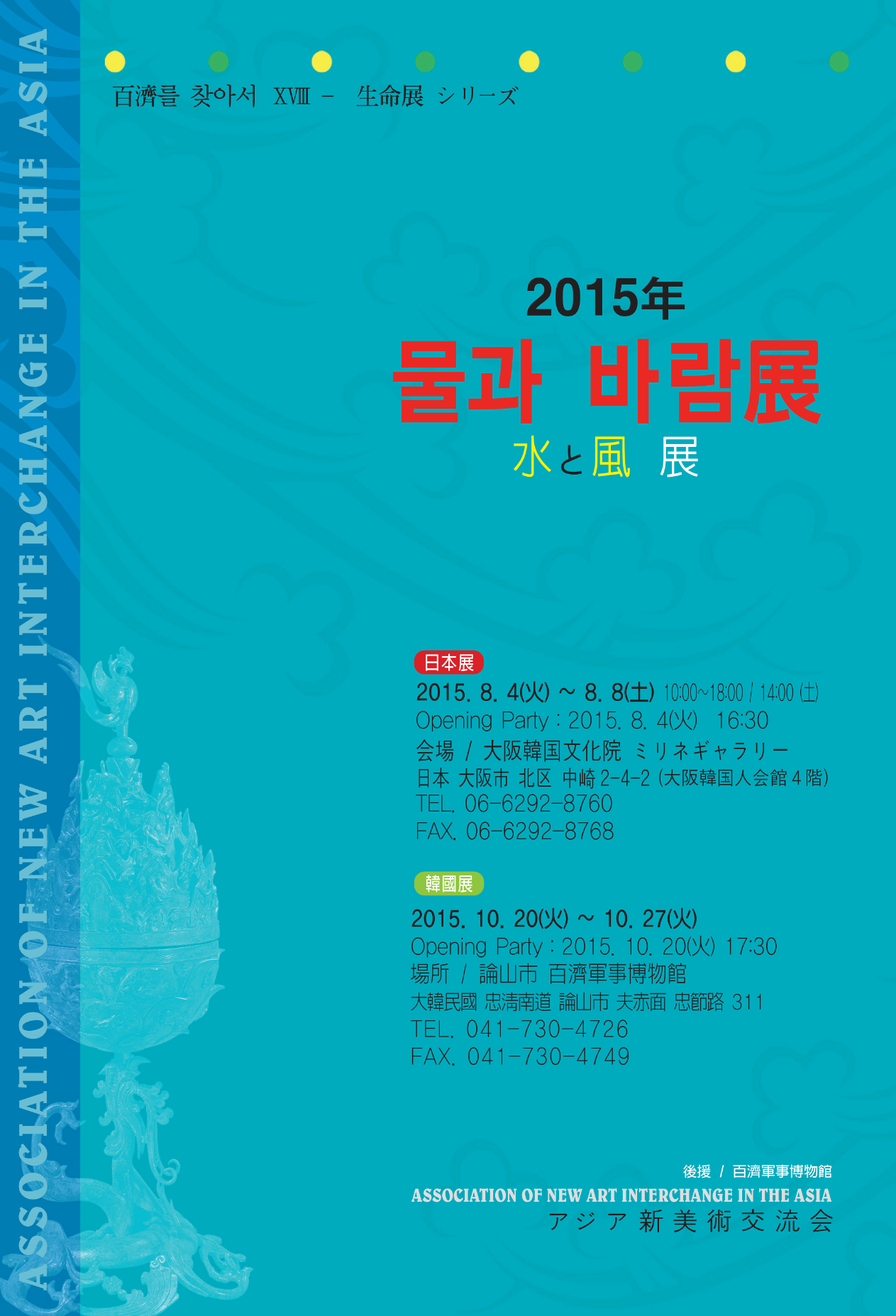 오사카한국문화원 미리내 갤러리에서는 아시아신미술교류회 주최로 「물과 바람」전을 개최합니다. 한국과 일본 약 60명의 작가들이 「동양의 고대문화」와 「생명」을 주제로 한 회화작품을 전시합니다.