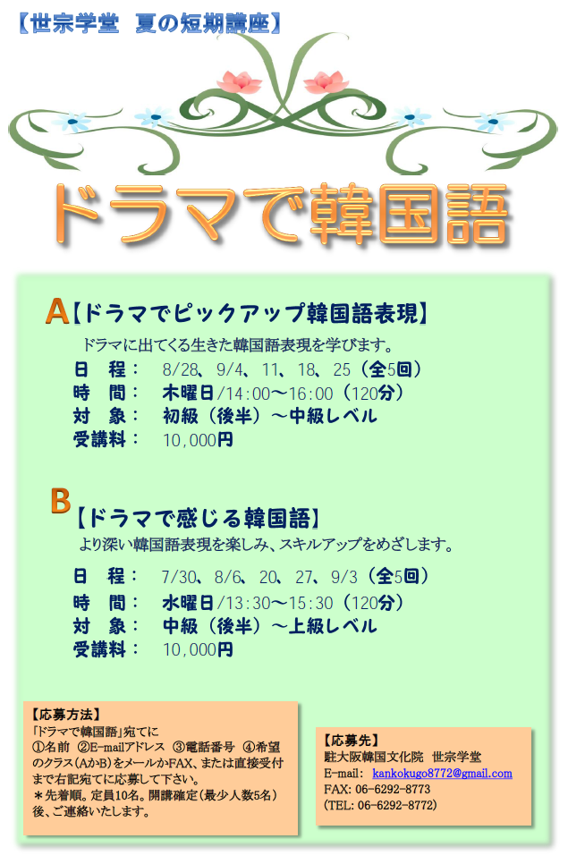 ■ [세종학당] 여름 단기강좌① 드라마로 한국어