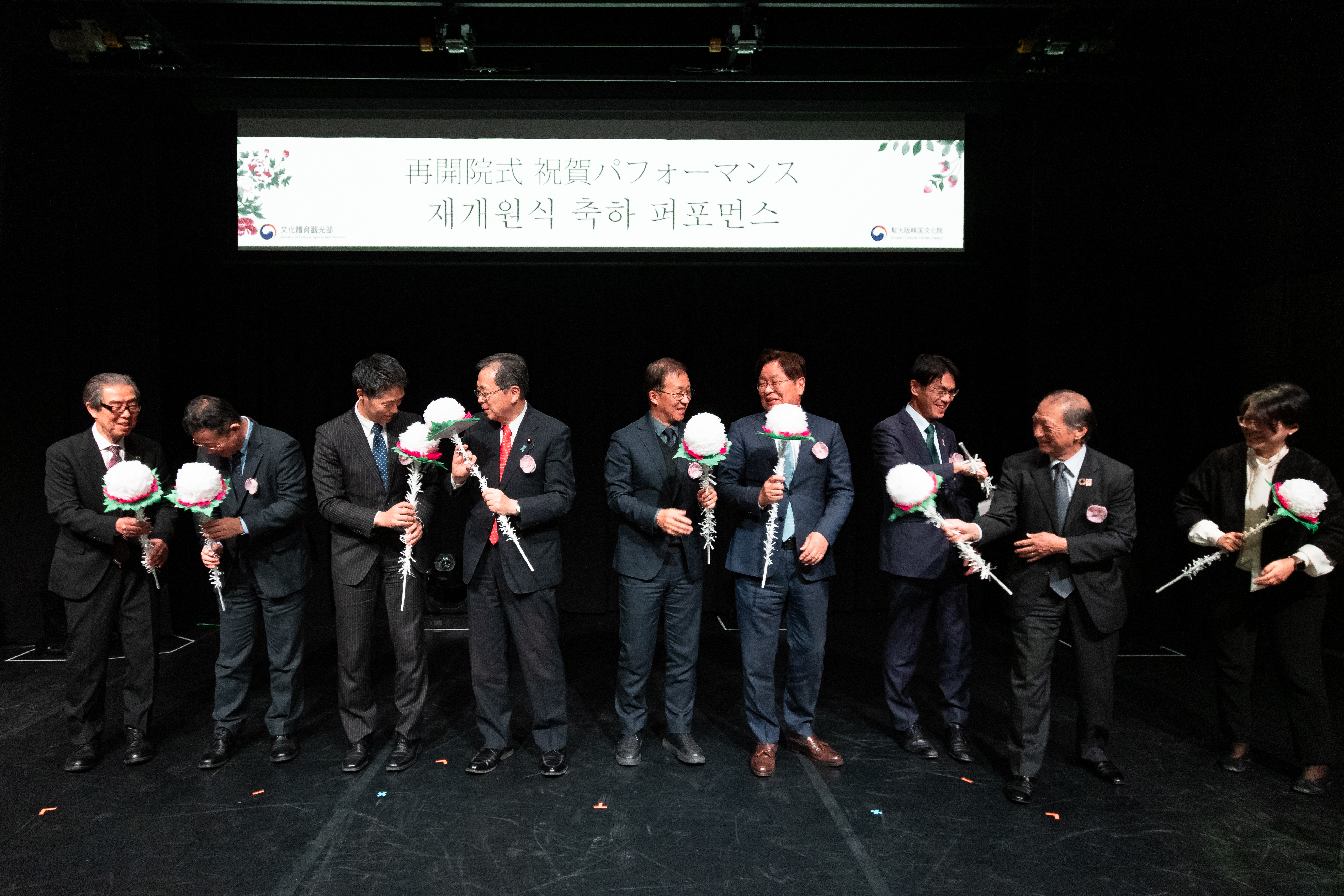 재개원식에는 문화체육관광부 최보근 국제문화홍보정책실장을 비롯해 일본 공명당 사이토 테츠오 대표, 문화청 이마이즈미 쥬고 심의관, 외무성 히메노 츠토무 간사이담당 대사, 나라현 야마시타 마코토 지사 등 양국 인사 150여 명이 참석하여 오사카한국문화원의 새로운 출발을 축복했습니다.