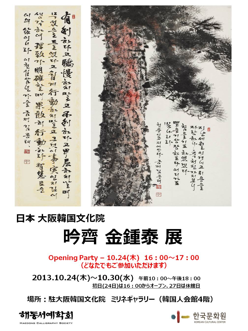 日本 大阪韓国文化院「昑齊 金鍾泰」 展