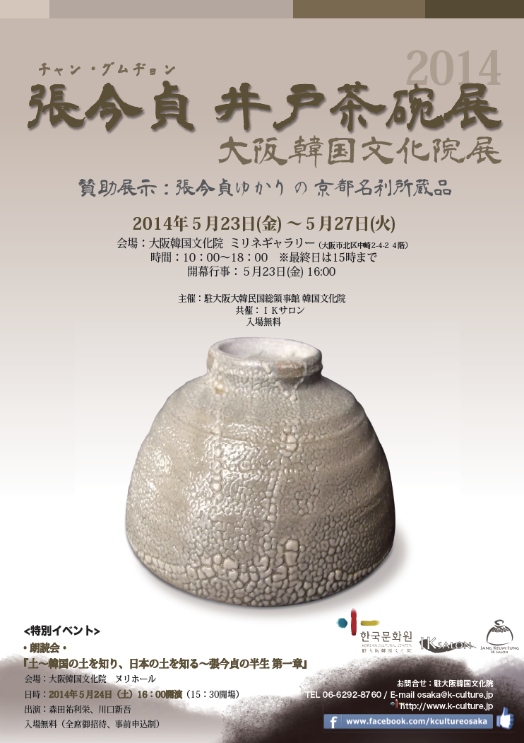(5/23~27) 張今貞 井戸茶碗展 2014 大阪韓国文化院展