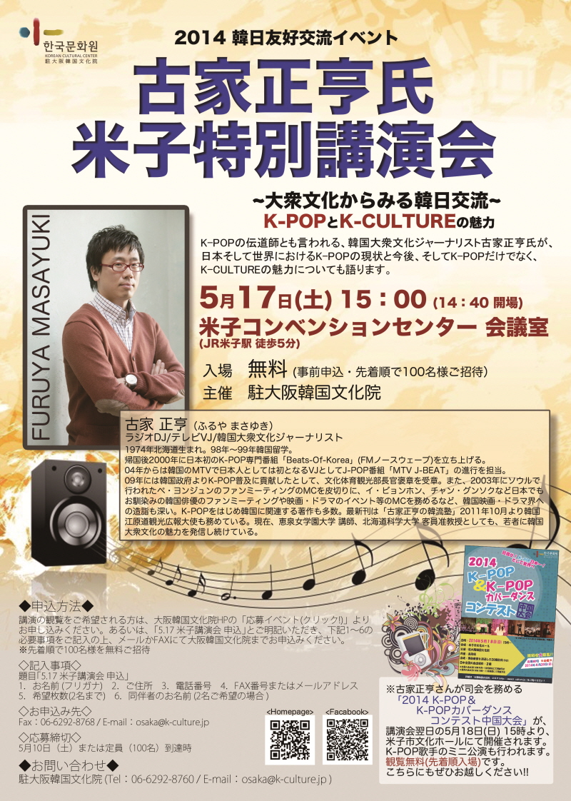 (5/17) “K-POPの伝道師” 古家正亨氏 米子特別講演会